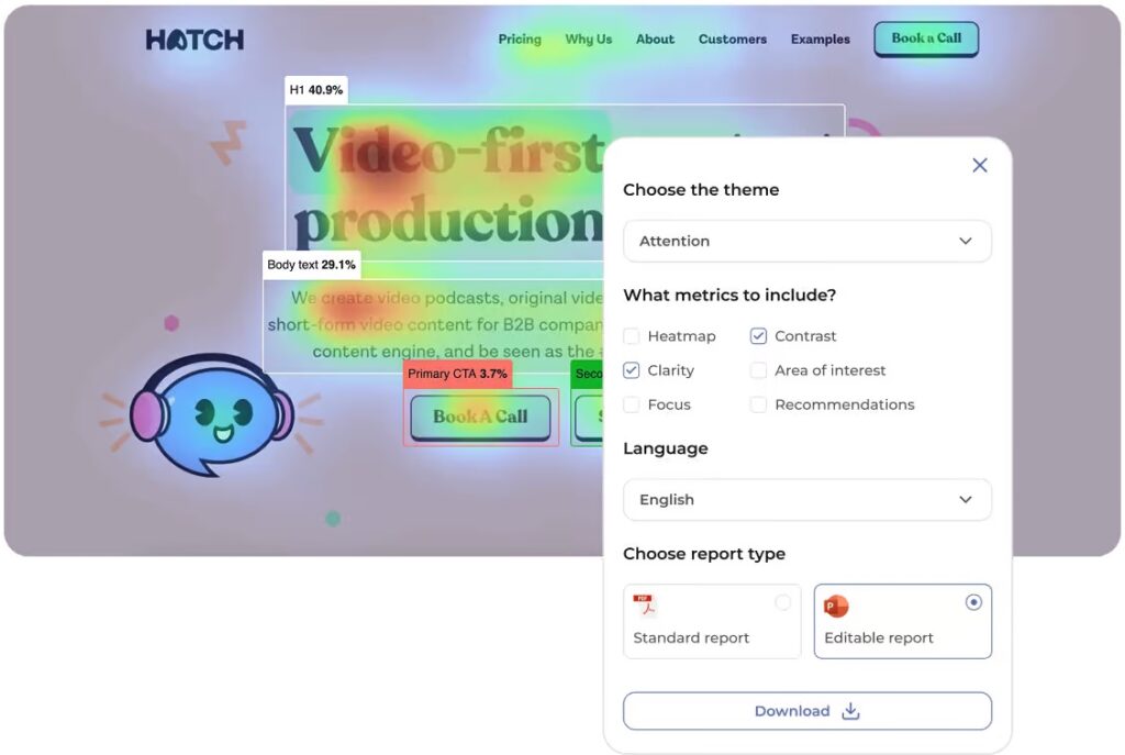 Generate PDF or PPT reports with attention metrics, clarity scores, and competitor comparisons. Show executives exactly why your design works. One designer mentioned clients literally said “Wow” during presentations.