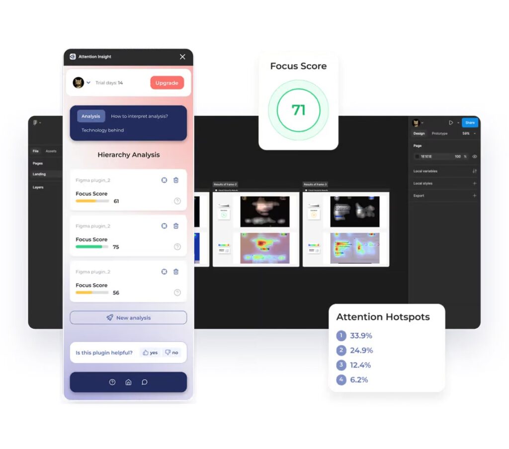 Additionally, the Figma plugin brings attention analytics directly into your design files. No need to export mockups or switch tools. Test designs as you create them.
